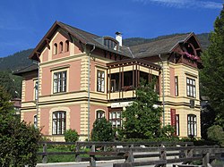 Eine zweigeschoßige Sommervilla, bei der Veranda und Balkon auf das Panorama des Mondsees ausgerichtet sind, entstand nach den Plänen von Karl Stattler, einem Schüler der Wiener Hofopernarchitekten Eduard van der Nüll und August Sicard von Sicardsburg.[3] | BDA-Hist.: Q37864315 Status: Bescheid Stand der BDA-Liste: 2024-06-15 Name: Villa Uhl, Strindberg-Villa GstNr.: .27/2 |