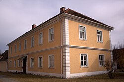 BDA-Hist.: Q38046851 Status: § 2a Stand der BDA-Liste: 2024-06-15 Name: Rathaus/Gemeindeamt, Wohnhaus, ehem. Gemeindehaus GstNr.: .8 |