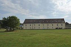 Ein langgestrecktes, überwiegend eingeschoßiges Gebäude im Westen des Schlosses. | BDA-Hist.: Q64765076 Status: Bescheid Stand der BDA-Liste: 2024-06-15 Name: Ehem. Wirtschaftsgebäude des Schlosses mit Hungerturm GstNr.: 1 Wirtschaftsgebäude mit Hungerturm (Obersiebenbrunn) |