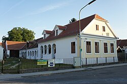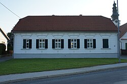 Das ehemalige evangelische Pfarrhaus bildet mit der Kirche ein Ensemble. Es wurde 1784 erbaut und ist somit einer der ältesten datierten Laubenhöfe. | BDA-Hist.: Q38124292 Status: § 2a Stand der BDA-Liste: 2024-06-15 Name: Ehem. evang. Pfarrhaus H.B. GstNr.: 1055 Graf Erdödystraße 20, Oberwart |