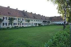 Erbaut 1932 und nach General der Kavallerie Johann Graf Sporck benannt. | BDA-Hist.: Q38124534 Status: Bescheid Stand der BDA-Liste: 2024-06-15 Name: Sporck-Kaserne, Mannschaftsgebäude GstNr.: 1689/6 |