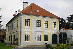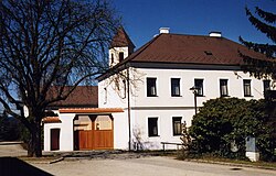 | Pfarrhof Kleinhain von der Südseite, nach der Renovierung. Gebäude (klassizistisch) stammt aus dem Jahr 1784, Baumeister: Josef List | Eigenes Werk | F.Higer | Datei:Pfarrhofhain.JPG |