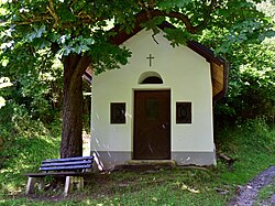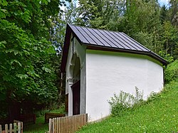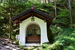 Die barocke Kapelle hat ein Kreuzgratgewölbe und wurde im 19. Jahrhundert renoviert. Ein Kruzifix stammt aus der ersten Hälfte des 19. Jahrhunderts. | BDA-Hist.: Q37834357 Status: § 2a Stand der BDA-Liste: 2024-06-15 Name: Kapelle in der Auerklamm GstNr.: .497/13 |