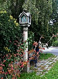 Die Bäckersäule am Kreisverkehr Hostauerstraße / Steingasse / Dr.-Niclas-Ambos-Straße ist durch moderne Glasbilder der Heiligen Ägidius und Elisabeth bzw. Nikolaus und Leonhard geschmückt. | BDA-Hist.: Q37887767 Status: § 2a Stand der BDA-Liste: 2024-06-15 Name: Bildstock GstNr.: 1029/1 Bäckersäule (Ottensheim) |