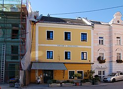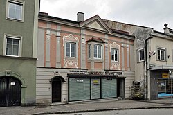 Ende des 16. Jahrhunderts erbaut mit Vorder- und Hinterhaus samt Innenhof. Außen Renaissancefenster, im Inneren Holzdecken mit Rüstbäumen sowie Stichkappentonnen. Das Gebäude wurde 2013 komplett umgebaut,[1] die denkmalgeschützten Strukturen sind von der Straße aus nicht sichtbar. | BDA-Hist.: Q38075792 Status: Bescheid Stand der BDA-Liste: 2024-06-15 Name: Bürgerhaus, Schiffmeisterhaus GstNr.: .49 |