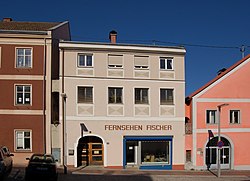 Die ehemalige Fleischhauerei entstand zwischen dem 16. bis 17. Jahrhundert und wurde im ersten Drittel des 19. Jahrhunderts adaptiert. Die Fassade wird durch ein Segmentbogentor akzentuiert, dass mit der Jahreszahl 1829 bezeichnet ist. | BDA-Hist.: Q37866664 Status: Bescheid Stand der BDA-Liste: 2024-06-15 Name: Wohnhaus, ehem. Fleischhauerei (bez. David Haider) GstNr.: .58 |