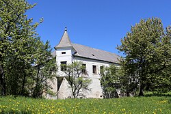 | Südansicht des Schlosses in Arndorf , ein Ortsteil der niederösterreichischen Marktgemeinde Pöggstall . Das zweigeschossige Hauptgebäude hat einen südseitigen Eckerker, der im Zuge von Umbauten in der ersten Hälfte des 16. Jahrhunderts errichtet wurde. | Eigenes Werk | C.Stadler/Bwag | Datei:Arndorf - Schloss.JPG | |