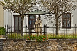 Beim Haus Pöggstall 13 steht unter einem Metallbaldachin eine Nepomukstatue aus der Zeit um 1890. | BDA-Hist.: Q38123706 Status: § 2a Stand der BDA-Liste: 2024-06-15 Name: Figurenbildstock hl. Johannes Nepomuk GstNr.: 776/7 |