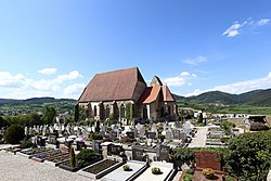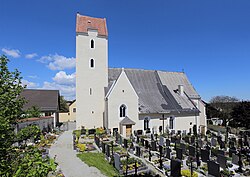 | Kath. Filialkirche, ehem. Pfarrkirche hl. Anna im Felde und Friedhof