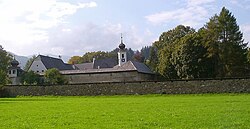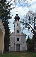 Die Kalvarienbergkirche steht auf einer 1034 m hohen Anhöhe nordöstlich des Ortsgebiets. Sie wurde 1857–1860 durch Franz und Johanna Neuper erbaut und 1956 restauriert. Die Kirche ist dreijochig mit einem Halbkreisschluss, kannelierte Pilaster mit korinthischen Kapitellen. Im Westjoch eine Empore auf Platzl mit einer Balusterbrüstung, das Schmiedeeisengitter datiert auf 1859. Dachreiter mit Zwiebelhaube. Der Altar wurde nach einem Entwurf von Johann Max Tendler vom Tischler Jakob Mayer 1859 errichtet, das Altarbild zeigt eine Pietà; der Tabernakel ist freistehend. Votivbilder aus den Jahren 1835, 1863 und 1869. Ein Bild des Heiligen Wandels stammt aus dem 3. Viertel des 19. Jahrhunderts und ein Bild auf der Empore zeigt Maria mit Kind und Heiligen in einer Kopie nach Solimena. Neben der Kirche befinden sich zwei offene Kapellen, die Kreuzigungskapelle und die Kapelle Christus in der Rast. |