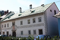 Das Plazottahaus ist ein zweigeschoßiger, an drei Seiten freistehender, Renaissancebau, der nach seinen Besitzern aus dem 19. Jahrhundert benannt ist. Die Bausubstanz aus der Entstehungszeit ist hervorragend erhalten. Ein Sgraffitofries an der Hauptfassade, das in das Jahr 1585 datiert wurde, ist teilweise erhalten und wurde 1989 bei Renovierungsarbeiten freigelegt. Das Bildprogramm des Sgraffito ist reformatorisch geprägt. Über dem rundbogigen Renaissance-Portal befindet sich ein barockes Medaillon das mit den Buchstaben P K und der Jahreszahl 1718 bezeichnet ist. Das Portal selbst ist von einem rechteckigen Steingewände akzentuiert, in dessen Zwickel sich reliefierte Köpfe befinden. Das gekuppelte Renaissancefenster über dem Barockmedaillon ist mit ionisierenden Säulen, einer profilierten Steinrahmung und einem Sohlbankgesims versehen. Der multifunktionale Erdgeschoßflur (Lab'n genannt) ist in Ost-West-Richtung errichtet und ist heute abgemauert. Über einer Säule in der Lab'n erstreckt sich ein Kreuz- und Tonnengewölbe mit Stichkappen mit teilweise angeputzten Graten.[13][15] Das Bildprogramm des erhaltenen Sgraffitofrieses auf der rechten Fassadenwand zeigt Szenen aus den Alten und Neuen Testament mit einer für den Protestantismus typischen Themenwahl:[15] Im ersten Bild (beginnend vom Eingangsportal) lassen sich nur noch ein Einhorn, ein Hirsch und ein weiteres Tier erkennen, die sich in einer Hügellandschaft mit Bäumen befinden. Das zweite Bild zeigt die Taufe Christi. Im ebenfalls schlecht erhaltenen dritten Bild wird ein Mann mit einem Tier dargestellt. Das vierte und fünfte Bild sind mehrteilig. Im vierten wird links die Geschichte Jonas dargestellt (Jona unter der Kürbislaube mit dem Auge Gottes über ihm; Jona wird vom Wal verschlungen und wieder ausgespien); in der Mitte befindet sich eine Darstellung des auferstandenen Christus mit dem Himmlischen Jerusalem über ihm; rechts die eherne Schlange und Christus am Kreuz. Das fünfte Bild zeigt links die Darstellung des schlafenden Adams, aus dessen Rippe Gott Eva schuf. Rechts zeigt Adam und Eva vor dem Baum der Erkenntnis. Das sechste Bild stellt die Opferung Isaaks dar, das siebte das Mannawunder während der Wanderung des Volkes Israel durch die Wüste. |