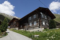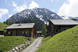 | Almenensemble Ebeleoberhalb der nicht mehr bewohnten Häuser von Pfafflar liegen diese alten Wohngebäude. Heute werden sie als Wochenendwohnungen genutzt. Im Hintergrund der nordwestliche Ausläufer des Imster Muttekopfs, rechts hinten die Kübelwände | Eigenes Werk | Pfarrerotto | Datei:Pfafflar4950.jpg | |