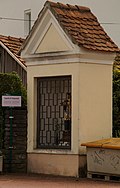 In der Nische der Kapelle befindet sich eine Sandsteinfigur des hl. Nepomuk aus dem 19. Jahrhundert.[2] | BDA-Hist.: Q38126461 Status: § 2a Stand der BDA-Liste: 2024-06-15 Name: Wegkapelle hl. Johannes Nepomuk GstNr.: 1449 Nepomukkapelle Pinkafeld |