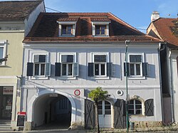 In dem Gebäude war in den 1920er Jahren das Heimatmuseum untergebracht. | BDA-Hist.: Q38126054 Status: § 2a Stand der BDA-Liste: 2024-06-15 Name: Bürgerhaus GstNr.: 155 Durchgangshaus, Pinkafeld |