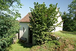1847 errichteter kleiner Rechteckbau nahe der Kalvarienbergkirche. Innen beherbergt er eine Grabnische. | BDA-Hist.: Q37847837 Status: § 2a Stand der BDA-Liste: 2024-06-15 Name: Hl.-Grabkapelle GstNr.: .111/4 |