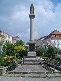 Mariensäule, die an der Stelle der alten Pfarrkirche St. Anna 1904 auf dem Marktplatz errichtet wurde. Auf einem Sockel erhebt sich eine schlanke Säule, die eine Marienfigur aus der Werkstatt von Josef Linser trägt. | BDA-Hist.: Q37847821 Status: § 2a Stand der BDA-Liste: 2024-06-15 Name: Mariensäule GstNr.: 1903/8 |