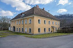 Der Pfarrhof stammt aus dem frühen 18. Jahrhundert und wurde 1852 unter Abbruch von Teilen des Wirtschaftsgebäudes nach Norden erweitert. Die übrigen Wirtschaftsräume wurde 1957 als Pfarrsaal adaptiert. Der breit gelagerte, zweigeschoßige und hakenförmige Pfarrhof besteht aus dem Wohnstock mit Walmdach und einem kurzen Wirtschaftstrakt. | BDA-Hist.: Q37857150 Status: § 2a Stand der BDA-Liste: 2024-06-15 Name: Pfarrhof GstNr.: .74, 1230 |