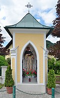 Statue auf Postament mit Kartuschenreliefs, um 1722/25. Baldachinarchitektur aus der Zeit um 1900. | BDA-Hist.: Q38068614 Status: Bescheid Stand der BDA-Liste: 2024-06-15 Name: Figurenbildstock hl. Johannes Nepomuk GstNr.: .126 |