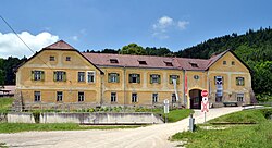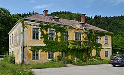 | Ehem. Meierhof in Perwarth, Gemeinde Randegg, Niederösterreich. Denkmalgeschützt. Davor die Strecke der Lokalbahn Ober-Grafendorf – Gresten mit Bahnübergang. | Eigenes Werk | Herzi Pinki | Datei:Meierhof Perwarth 02.jpg | |