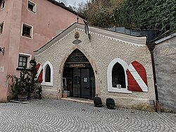 | Diese Datei zeigt das im Tiroler Kunstkataster erwähnte Objekt mit der ID 19411 . ( auf tirisMaps , PDF , weitere Bilder auf Commons , Wikidata ) | Eigenes Werk | Jan Beránek | Datei:Bier- bzw. Weinkeller der Nagelschmiedhäuser.jpg | |