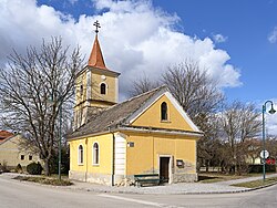 Rechteckbau mit Rundbogenfenstern, mächtiger Turm mit Lothringer Kreuz. Erbaut im Jahre 1786 an Stelle einer Betsäule heiliger Florian. | BDA-Hist.: Q37832949 Status: § 2a Stand der BDA-Liste: 2024-06-15 Name: Ortskapelle heiliger Florian GstNr.: 102 Ortskapelle Minichhofen, Gemeinde Ravelsbach |