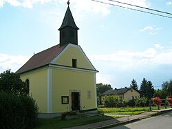 Spätbarockbau mit gefaschten Rundbogenfenstern und hölzernem Giebelreiter mit Pyramidenhelm aus dem Jahre 1798. | BDA-Hist.: Q37833067 Status: § 2a Stand der BDA-Liste: 2024-06-15 Name: Ortskapelle GstNr.: 64/2 |