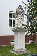 Die Statue des hl. Josef mit Jesuskind stand früher vor der Einfahrt zum Schloss Rechnitz. Heute befindet sie sich im Vorgarten des Pfarrhauses Rechnitz. | BDA-Hist.: Q38127309 Status: § 2a Stand der BDA-Liste: 2024-06-15 Name: Figurenbildstock hl. Josef GstNr.: 465 Figurenbildstock Heiliger Josef, Rechnitz |