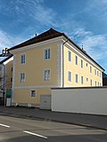 Das Tauscherhaus ist ein gemauertes drei-, unter dem Giebel viergeschoßiges Gebäude mit Satteldach auf rechteckigem Grundriss aus dem 16. / 17. Jahrhundert. In den Giebelfeldern weitere Fenster und jeweils vier ovale Belüftungsöffnungen. Die westseitige Hauptfassade ist neunachsig und hat etwas rechts der Mitte ein barockes Korbbogenportal mit zweiflügeliger Eingangstür und Oberlichte. Rund um das Portal sind in illusionistischer Architekturmalerei zwei Säulen und ein Gebälk mit Kartusche angedeutet. Die scheinarchitektonische Gliederung wird fortgesetzt durch kannelierte Eckpilaster an allen vier Seiten und rocaillegerahmte Fenster ab dem ersten Obergeschoß. Das Giebelfresko mit der Darstellung der Immaculata aus dem Jahre 1776 wird Johann Jakob Zeiller zugeschrieben. Innen hat das Gebäude in allen drei Geschoßen einen Mittelflurgrundriss, der im Erdgeschoß durch den Einbau von Geschäftslokalen etwas gestört ist. In den Räumen großteils fein ausgearbeitete Stuckdecken.[33] Das Haus dient aktuell als Musikschule. |