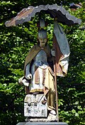 Am 1992 errichteten Brunnen befindet sich eine geschnitzte Statue des hl. Florian mit Löscheimer und brennendem Haus aus dem 19. Jahrhundert.[13] | BDA-Hist.: Q38114653 Status: § 2a Stand der BDA-Liste: 2024-06-15 Name: Brunnenfigur hl. Florian GstNr.: 252 |