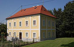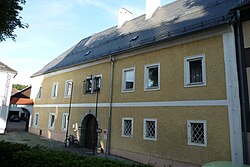 Der Pfarrhof entstand 1638 unter Einbeziehung älterer Teile als zweigeschoßiger Bau mit Walmdach, frühbarockem Rustikaportal und Doppelfenstern mit barockem Fensterkorb. | BDA-Hist.: Q37845088 Status: § 2a Stand der BDA-Liste: 2024-06-15 Name: Pfarrhof GstNr.: .61/1 |