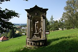 | Die Figur des Heiligen Johannes Nepomuk bei der Wallfahrtskirche Maria Trost in Berg bei Rohrbach (Oberösterreich) stammt aus der Zeit um 1750. Dieses Bild zeigt das in Österreich unter der Nummer 13987 denkmalgeschützte Objekt. ( Commons , de , Wikidata ) | Eigenes Werk | Michael Kranewitter | Datei:Figurenbildstock heiliger Johannes Nepomuk II.jpg |