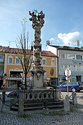 Die spätbarocke Dreifaltigkeitssäule besteht aus einem hohen Sockel mit seitlichen Voluten und Inschriften sowie einem von Wolken und Putten umfangenen Obelisken. Die mit der Jahreszahl 1743 bezeichnete Säule wird von einer Darstellung der heiligen Dreifaltigkeit bekrönt, vor dem Obelisken befindet sich eine Figur der Maria Immaculata. | BDA-Hist.: Q37844885 Status: Bescheid Stand der BDA-Liste: 2024-06-15 Name: Dreifaltigkeitssäule GstNr.: 2525/2 Dreifaltigkeitssäule (Rohrbach in Oberösterreich) |