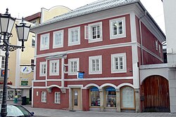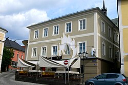 Das Poeschlhaus wurde in der zweiten Hälfte des 17. Jahrhunderts errichtet und im 18. Jahrhundert umgebaut. Das zweigeschoßige Bürgerhaus besitzt eine Scheinattika und ein Schopfwalmdach. Die spätbarocke Fassade mit Ortsteinquaderung und Gesimsen stammt aus dem zweiten Viertel des 18. Jahrhunderts. | BDA-Hist.: Q37845065 Status: Bescheid Stand der BDA-Liste: 2024-06-15 Name: Bürgerhaus, sog. Poeschl-Haus GstNr.: .54, .53/2 |