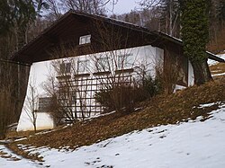 Das Haus stammt aus dem Jahr 1933. Bauherren sind Albert Birkle (akademischer Maler) und seine Ehefrau Elisabeth. Der Entwurf stammt vom Architekten Otto Prossinger. Das Haus schließt bewusst an die alpine, bäuerliche Tradition an. Ausstattung durch bodenständiger Handwerkskunst mit wertvollem heimischen Material. | BDA-Hist.: Q37971915 Status: Bescheid Stand der BDA-Liste: 2024-06-15 Name: Wohnhaus, Haus Birkle GstNr.: 104 |