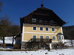 Der Abfalterhof geht auf das 17. Jahrhundert zurück. Der jetzige Bau ist vor Mitte des 19. Jahrhunderts zu datieren. Er erscheint heute als klassizistisch-biedermeierlicher Bau mit zwei Geschoßen und Walmdach sowie vorgebauten, überdachten Veranden. Seit 1973 im Besitz von James Preuschen. | BDA-Hist.: Q38023282 Status: Bescheid Stand der BDA-Liste: 2024-06-15 Name: Abfalterhof oder Villa Preuschen GstNr.: 243/1 |