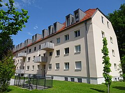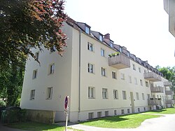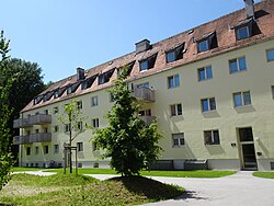 BDA-Hist.: Q64486217 Status: Bescheid Stand der BDA-Liste: 2024-06-15 Name: USFA Wohnhaussiedlung GstNr.: 2404/13 USFA Wohnhaussiedlung General-Keyes-Straße |