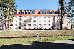 BDA-Hist.: Q64486204 Status: Bescheid Stand der BDA-Liste: 2024-06-15 Name: USFA Wohnhaussiedlung GstNr.: 2404/4 USFA Wohnhaussiedlung General-Keyes-Straße |