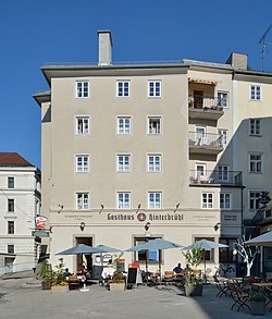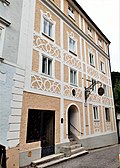 Das fünfgeschoßige Bürgerhaus ist im Kern spätmittelalterlich. In den Obergeschoßen wurden mehrere spätgotische Fenstergewände freigelegt. | BDA-Hist.: Q37971641 Status: Bescheid Stand der BDA-Liste: 2024-06-15 Name: Bürgerhaus GstNr.: 41 |