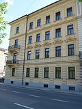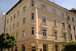 Die Fassade des viergeschoßigen späthistoristischen Mietwohnhauses ist mit neobarockem Dekor gestaltet. | BDA-Hist.: Q37971603 Status: Bescheid Stand der BDA-Liste: 2024-06-15 Name: Wohnhaus GstNr.: 1053/2 |