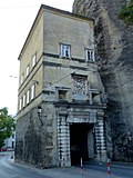 Das Klausentor sperrte einst die Engstelle zwischen der Salzach und dem Mönchsberg. Der erste Bau des 13. Jahrhunderts wurde im Jahr 1612 nach einem Brand erneuert und mit der Stadtmauer entlang dem Ufer verbunden. Über der tonnengewölbten Durchfahrt befinden sich zwei durch Gesimsbänder gegliederte Wohngeschoße. | BDA-Hist.: Q38002832 Status: Bescheid Stand der BDA-Liste: 2024-06-15 Name: Stadttor, Klausentor GstNr.: 417 Klausentor, Salzburg |