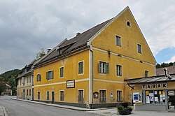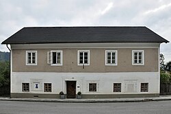 Der ehemalige Gasthof Zur Post, davor Gewerkenhaus, hat eine Sgraffitofassade gegen 1600, Bänder mit Pflanzenmotiven und Sirenen. Die Fensterumrandungen wurden bereits erneuert. In der Mitte des Obergeschoßes ein Doppelfenstergewände mit Würfelkapitellen. 1975 restauriert.[4] | BDA-Hist.: Q38021146 Status: Bescheid Stand der BDA-Liste: 2024-06-15 Name: Gewerkenhaus, ehem. Gasthof Zur Post GstNr.: .16/1 |