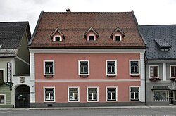Der Wappenstein über dem Portal ist mit 1565 bezeichnet.[4] | BDA-Hist.: Q38047856 Status: Bescheid Stand der BDA-Liste: 2024-06-15 Name: Bürgerhaus mit Wirtschaftsgebäude und Toreinfahrt GstNr.: .7 |