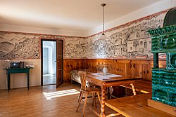Der Maler und Grafiker Franz von Zülow wohnte um 1940 im Anwesen Sternberg und bemalte Wände, Decken und Türen in zwei Räumen des Hauses. | BDA-Hist.: Q105646861 Status: Bescheid Stand der BDA-Liste: 2024-06-15 Name: Bauernhofanlage Sternberg GstNr.: .26/1 Bauernhofanlage Sternberg |