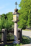 Ein toskanischer Postamentpfeiler aus der zweiten Hälfte des 17. Jahrhunderts mit bildtafellosem Aufsatz und einer Steinzwiebelhaube. | BDA-Hist.: Q38056115 Status: Bescheid Stand der BDA-Liste: 2024-06-15 Name: Bildstock GstNr.: 95/3 |