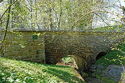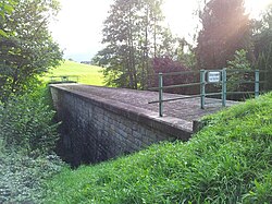 Die beiden geschützten Bauwerke der II. Wiener Hochquellenwasserleitung sind der Einsteigturm 54 (Lage) und die Kanalbrücke Lehenhof (Lage). | BDA-Hist.: Q37825182 Status: Bescheid Stand der BDA-Liste: 2024-06-15 Name: Einsteigturm 54, Kanalbrücke Lehenhof GstNr.: 79, 1771 Hochquellenwasserleitung in Scheibbs |