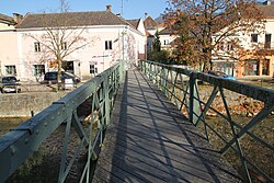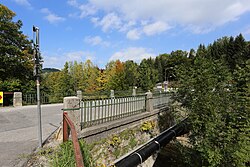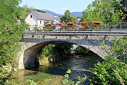 Korbbogig unterwölbter Konglomeratquaderbau aus dem Jahr 1876. Die Brücke über die Erlauf verbindet die beiden Katastralgemeinden Brandstatt und Scheibbsbach gut zwei Kilometer nordnordwestlich des Stadtzentrums. | BDA-Hist.: Q37945369 Status: § 2a Stand der BDA-Liste: 2024-06-15 Name: Straßenbrücke, Saffenbrücke GstNr.: 1402/3 |