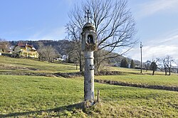 Die Steinsäule mit Doppelkreuz befindet sich in Hausmanning. Ursprünglich war dieses Kleindenkmal mit Steinbildern ausgestattet, diese sind jedoch verlorengegangen. Ob es sich bei dem Bildstock um eine Pestsäule handelt, ist fraglich.[7] | BDA-Hist.: Q37720344 Status: § 2a Stand der BDA-Liste: 2024-06-15 Name: Bildstock, sog. Pestsäule GstNr.: 1596/1 |