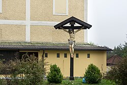 | Das circa 4 m hohe Kruzifix steht auf einer Grünfläche links des Pfarrhofes von Schwanenstadt. Es ist mit mehreren Jahreszahlen beginnend mit 1867 bezeichnet. | Eigenes Werk | Isiwal | Datei:Schwanenstadt Kruzifix Kirchengasse.jpg |
