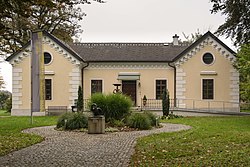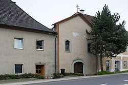 Eine barocke Kirche mit einem Rokokoaltar (um 1750).[2] Die ehem. Spitalskirche zu den 14 Nothelfern und das Benefiziatenhaus befinden sich in der Linzerstraße in Schwanenstadt. Die Spitalskirche war von 1954 bis 1961 an die evangelische Pfarrgemeinde von Schwanenstadt vermietet. 2014 wird das Benefiziatenhaus als Wohnhaus genutzt. | BDA-Hist.: Q37981724 Status: Bescheid Stand der BDA-Liste: 2024-06-15 Name: Ehem. Spitalskirche zu den 14 Nothelfern und Benefiziatenhaus GstNr.: .82/2, .81 |