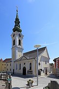 | Katholische Pfarrkirche hl. Pankraz in der oberösterreichischen Gemeinde Sigharting . Ursprünglich eine spätgotische, dreijochige Kapelle. 1680 wurde die Kapelle um ein Joch Richtung Westen erweitert und 1807 wurde im Osten ein dreijochiger Chor mit einem 3/12-Schluß angebaut. | Eigenes Werk | C.Stadler/Bwag | Datei:Sigharting - Kirche.JPG | |